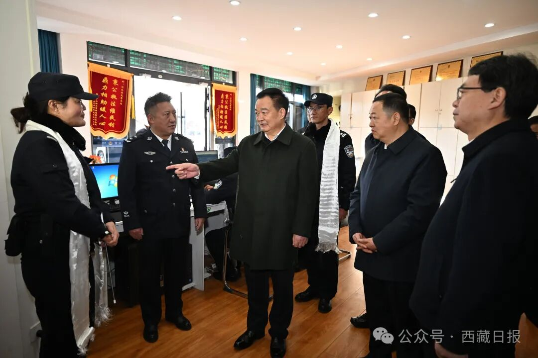 调研中,王君正强调,全区各地各部门要深刻认识维稳工作的重要性,坚持把维护稳定作为第一位的政治任务,时刻绷紧维护稳定这根弦,科学把握形势,增强责任感使命感,树牢底线思维,坚持问题导向,补齐工作短板,扎实做好各项工作,以实际行动坚定拥护“两个确立”、坚决做到“两个维护”。要全面落实维护社会稳定责任制,警钟长鸣、警惕常在,强化忧患意识、风险意识,坚决克服麻痹思想、厌战情绪、侥幸心理、松劲心态,以科学化机制和常态化、法治化理念,把维稳工作做在日常、做到经常、落实在基层,牢牢掌握维稳工作主动权。要坚决守住政治安全底线,坚持以铸牢中华民族共同体意识为主线,扎实推进中华民族共同体建设,持续开展“四大工程”“六项行动”,加强宗教事务治理法治化,深入开展反分裂斗争,大力推进智慧边防建设,坚决维护国家核心利益。要强化社会治安整体防控,完善维稳指挥调度体系,提高信息技术应用水平,建设好使用好“一张网、一平台”,加强实战化演练和随机性调度,发挥好各级综治中心作用,推动防控力量向基层下沉、向一线延伸,依法严厉打击各类违法犯罪活动,确保社会大局持续和谐稳定。要加快推进社会治理法治化,不断提高依法治藏水平,树立法治思维、提升法治能力,严格规范公正文明执法,保护合法、打击非法,在全社会营造自觉守法、办事依法、遇事找法、解决问题用法、化解矛盾靠法的浓厚氛围。要深化风险隐患排查化解,坚持关口前移、源头治理,着力抓好“三个环节”、提升“三种能力”、建立“三项机制”,聚焦重点领域、重要节点、关键环节,用心用情解决群众急难愁盼问题,切实把矛盾纠纷化解在基层、消除在萌芽状态。要扎实做好公共安全工作,严格落实安全生产责任制,强化各类自然灾害监测预警,健全完善应急处置体系和各类应急预案,加强应急救援队伍建设,不断提升应急处置的科学性、针对性和实效性,确保快速响应、高效处置、科学应对。