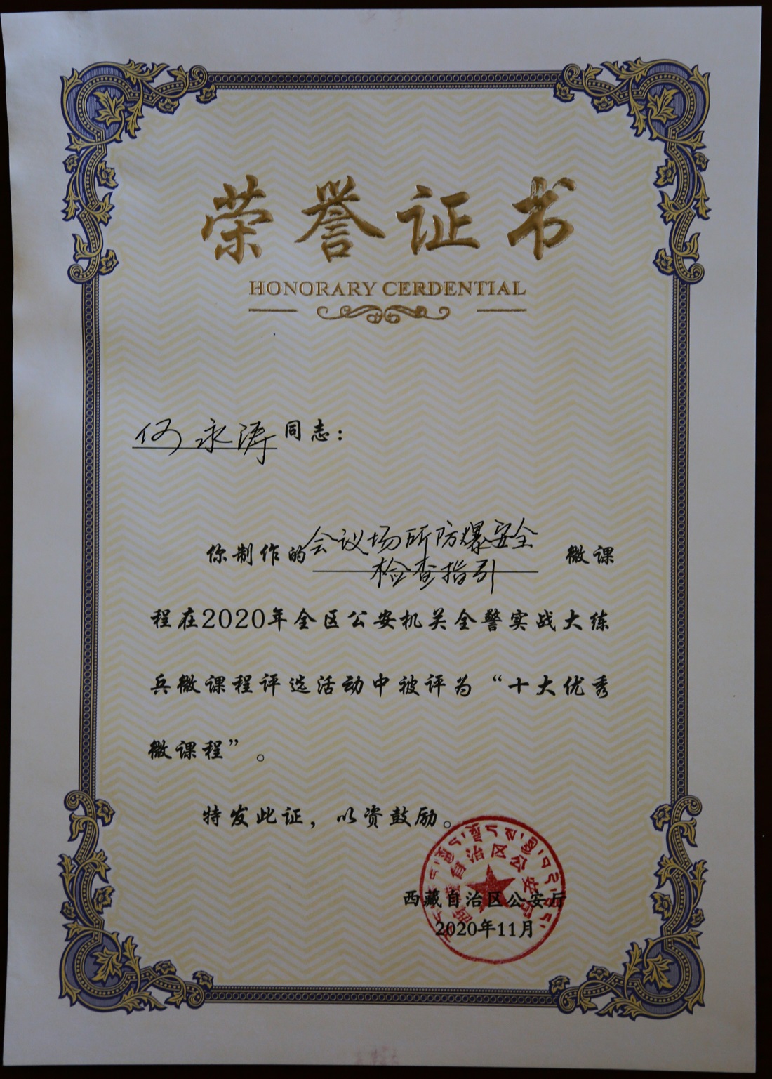 根据公安部《关于2019年至2022年开展全警实战大练兵指导意见》,区公安厅、市公安局党委安排部署,支队迅速调整工作思路,以全警实战大练兵和实战化教育训练工作为抓手,全面提升特战队员实战本领和应急处突能力。同时,抽调业务骨干赴山南参加全区公安机关全警实战大练兵微课程和公开课评选活动。支队特战大队荣获“全区公安机关全警实战大练兵标兵集体”荣誉称号;防爆安检大队何永涛制作的微课程被评为“十大优秀微课程”。