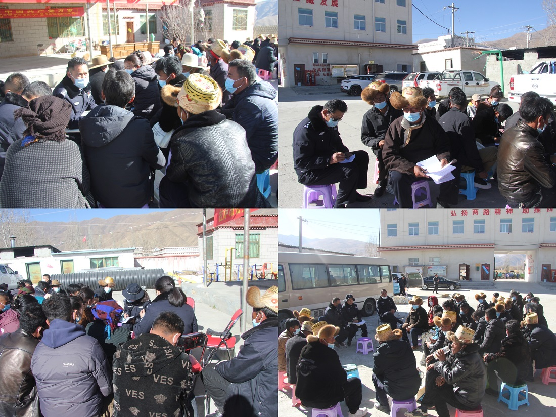 活动中,在新村党员活动室,李永寿政委同村两委班子成员召开了座谈会,并向空港新区管委会副主任达次、甲竹林镇党委书记加措以及新村两委班子成员详细询问了解:一是新村整个社会治安情况如何?有无矛盾纠纷的问题?二是新村是否存在一种地方性疾病?且是什么原因造成的地方病?目前有多少人患了该病?三是新村和新村下设的六个小组是否存在不稳定的因素,特别是在三月维稳期间,该村维稳防控措施落实情况到底如何?是否存在一些漏洞和隐患?四是村委会和群众提出的合理合规的困难和诉求。会后,李永寿政委建议:一是提高思想认识。建议支队驻村工作队和新村两委班子进一步发挥党建统领和思想引领作用,时刻用党的最新理论武装头脑、指导实践、推动工作,始终在思想上、政治上、行动上同以习近平同志为核心的党中央保持高度一致。进一步发挥共产党员先锋模范作用,将“管肚子”和“管脑子”紧密结合起来,面对面向群众宣传好党的路线方针政策特别是新时代党的治藏方略,教育引导广大群众坚定不移地听党话、感党恩、跟党走。二持续在保稳定上下功夫。从公安这个角度上来说,不管是在农牧区还是在乡村振兴中,我们的任务就是“切实维护农村的社会平安稳定”。建议支队驻村工作队和新村两委班子能够继续坚持强基导向、法治思维和系统治理,严格落实维护稳定的责任和党员干部带头搜集社情民意工作规定,持续加大矛盾纠纷排查化解工作力度,坚决以新村的稳定确保县区的稳定,以县区的稳定确保全市的稳定。三要铸牢中华民族共同体意识。中华民族共同体意识是国家认同、民族交融的情感纽带,是祖国统一、民族团结的思想基石,是中华民族绵延不衰、永续发展的力量源泉。铸牢中华民族共同体意识,是我国民族工作的主线,也是西藏工作的战略性任务。西藏自古以来就是伟大祖国不可分割的一部分,中华民族和各民族的关系,是一个大家庭和家庭成员的关系。我们要提倡落实“三个离不开”,建议村两委班子成员能够引导村民紧跟中国共产党,同村子里的各民族互相促进共同发展,用我们勤劳的双手去创造美好幸福生活。
