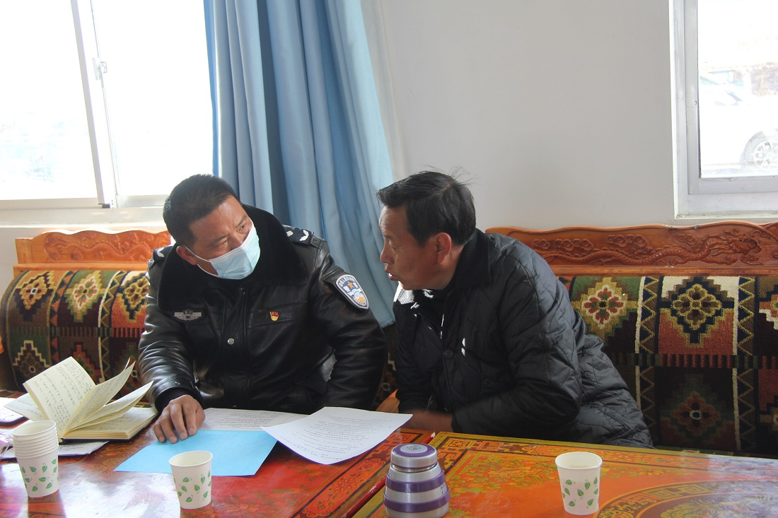 为落实区市党委关于常态化开展“领导干部下基层大接访办实事”活动要求,结合“3.5学雷锋日”和3月“主题党日”活动,受局党委委员、副局长拉珠同志和支队党委书记、支队长强巴同志的委托,3月7日上午,支队政委李永寿同志在党委委员、重案大队教导员边巴次仁同志、党委委员、组侦大队教导员吴伟同志、党委委员、政工监察科负责人李阿福同志以及支队各党支部书记的陪同下,深入支队驻村点(空港新区甲竹林镇新村)走访调查、访贫问苦,同时,宣讲了党的普惠性政策,宣传了反诈、反扒、防范侵害妇女儿童违法犯罪相关知识。