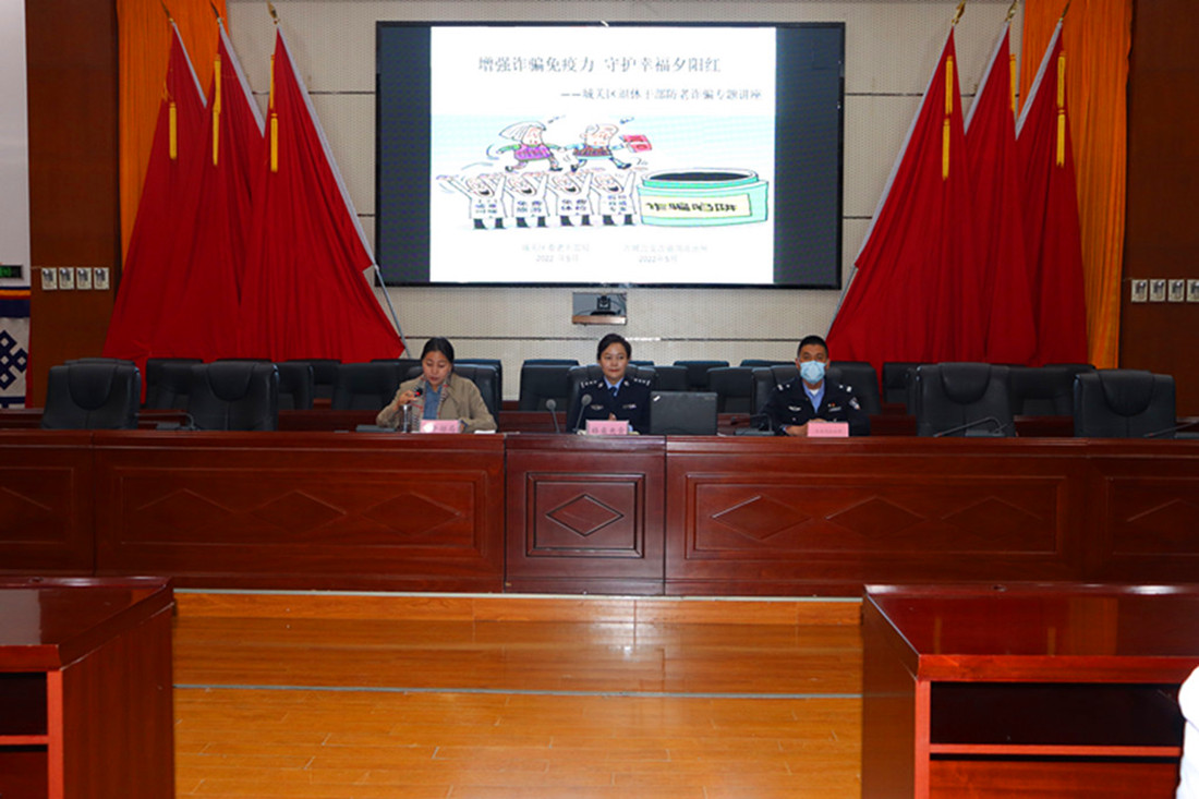 为严格落实上级公安机关关于《拉萨市公安局打击整治养老诈骗专项行动实施方案》的要求,切实维护老年人合法权益不受侵害,提高老年群体对养老诈骗违法行为的自我防范意思,守好老年人的“养老钱”。八廓古城公安局联合城关区老干部局、拉萨市反诈中心组织开展退休老干部养老诈骗知识讲座活动。