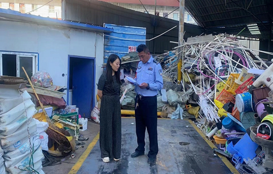工作中,民警首先查看废品回收站的安全出口和疏散通道是否畅通,消防设施器材是否完好有效,是否存在违禁物品或者偷盗品,并对回收站的各类物品进行一一检查,同时,告知废品回收站工作人员要遵纪守法,落实好回收站防范措施,全力预防各类偷盗案(事)件的发生。