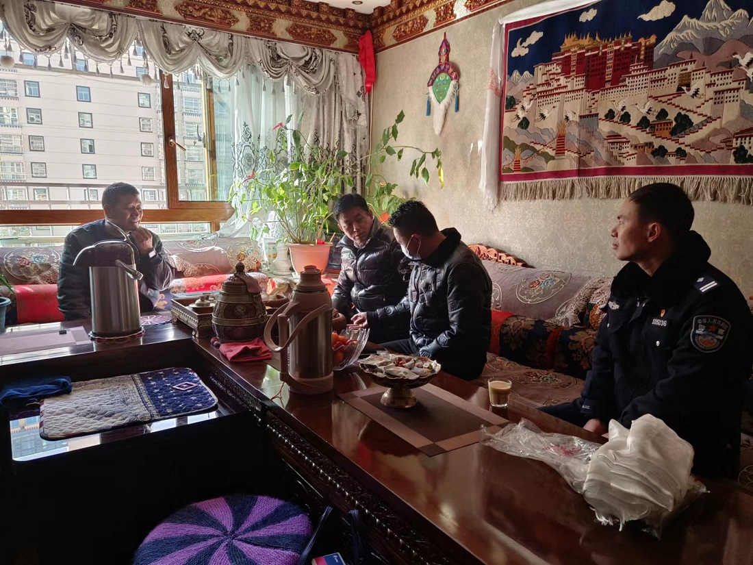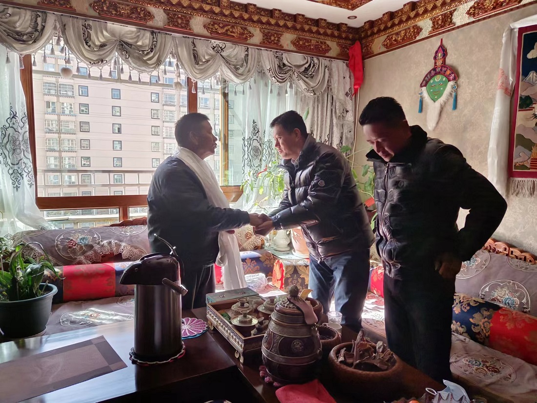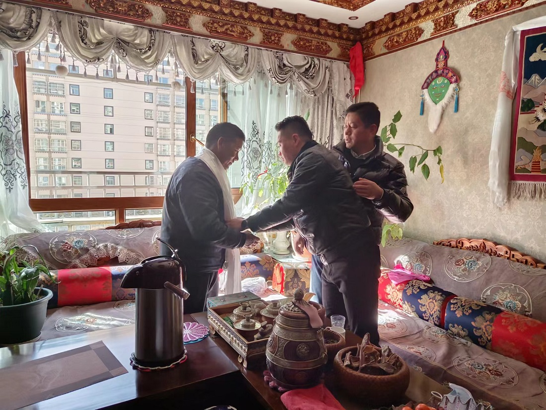 2月10日,在藏历新年来临之际,刑警支队支队长扎西多杰、副支队长边巴次仁在政工监察科科长李阿福的陪同下,看望慰问了支队离退休干部尼玛,为他及家人送去了组织的关心,表达支队党委的真挚问候和美好祝福。
