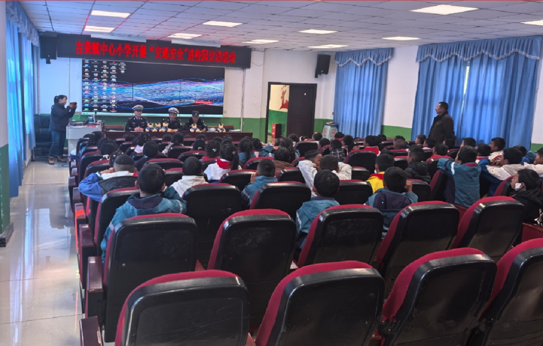 在古荣中心小学,民辅警以“图文拆解、趣味互动”的模式,聚焦学生日常出行场景,从安全过街、规范乘车、文明骑行等基础常识入手,生动解读交通标志的警示意义,强化“出家门即守交规”的安全认知。结合近期典型事故案例,用通俗语言剖析闯红灯、横穿马路的致命风险,引导学生树立“安全第一”的出行理念,为校园安全织密交通防护网。