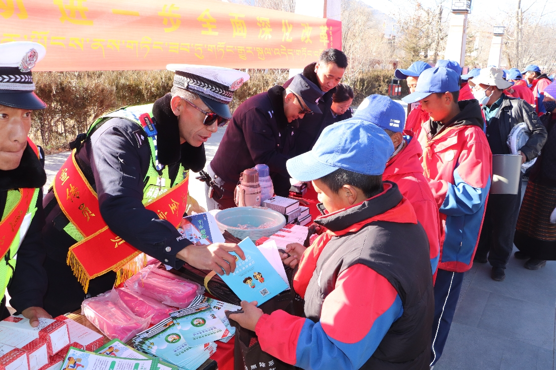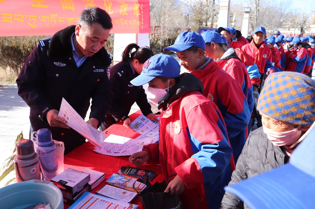 期间,宣传民警通过摆放宣传展板、悬挂横幅、发放宣传资料和现场讲解的方式进行宣传活动。结合我县辖区实际,以普及《中华人民共和国宪法》《中华人民共和国国家安全法》《中华人民共和国民法典》《西藏自治区民族团结进步模范区创建条例》……等法律法规,以及涉及治安治理、安全生产、拖欠农民工工资等方面为宣传重点,进一步提高群众对相关法律法规知识的知晓率。