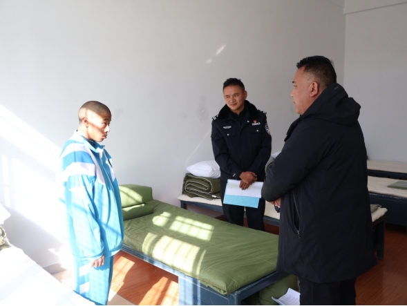 汇报会结束后,次仁尼玛同志坚持“不走过场、直奔一线”的调研原则,带队深入校园核心区域实地察看。在办公区域,仔细查阅警务工作台账、矫治教育档案、学生谈心谈话记录、安全隐患排查清单等资料,重点检查台账记录的规范性、完整性及问题整改的闭环性;在学生宿舍,实地查看住宿环境、安全设施配备情况,翻阅学生生活用品摆放清单,与宿舍管理人员详细了解学生作息管理、夜间巡查制度落实情况;在教室及矫治教育功能室,观摩课堂教学与矫治活动开展情况,查看教学器材、心理疏导设备使用状况,现场询问教师关于矫治教育方法创新、学生接受度等方面的情况。期间,次仁尼玛同志特意与4名处于关护期的学生进行一对一、面对面交流,用亲切平和的语气询问他们的学习收获、生活需求及思想变化,耐心倾听学生心声,鼓励他们珍惜矫治机会、重塑人生信念,同时从学生的表述中捕捉潜在问题线索,为后续工作优化提供第一手参考。