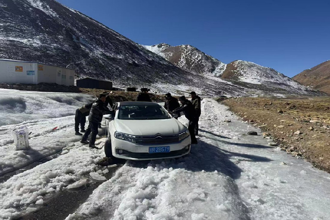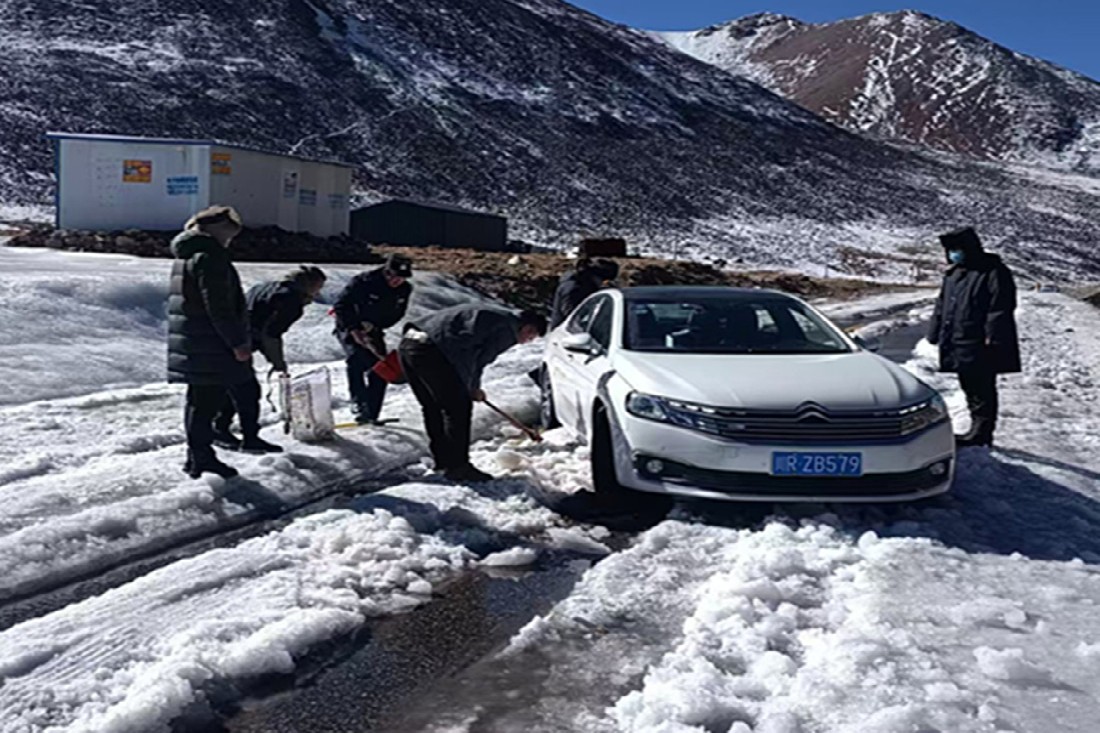 墨竹工卡县公安局门巴乡派出所党支部:组织开展一月“清朗墨竹”之对结冰道路开展铲雪除冰主题党日活动