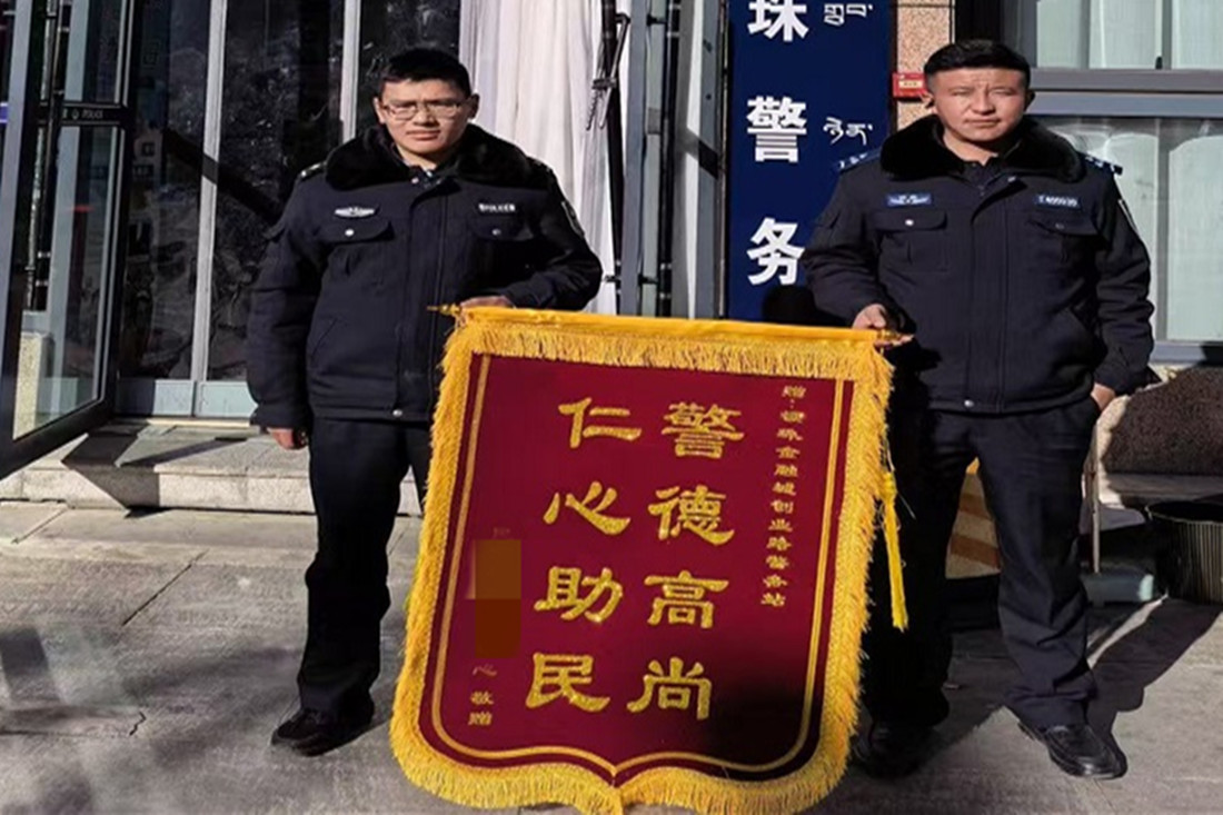 拉萨市柳梧新区公安分局热玛岗派出所创业路警务站收到一面锦旗