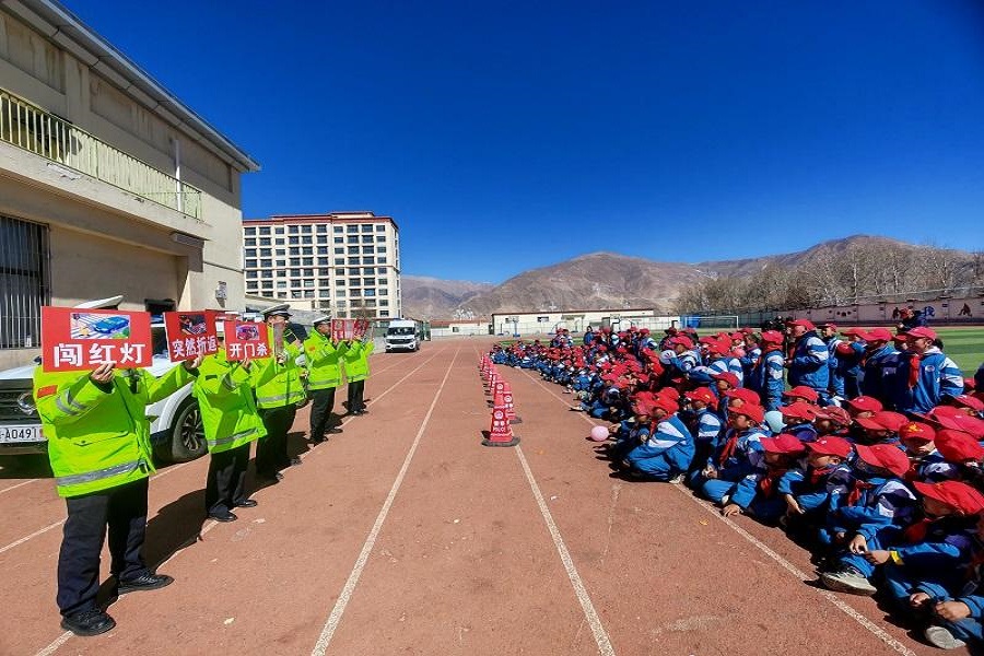 讲好“开学第一课”筑牢校园安全线—拉萨市公安局达孜分局交管大队开展交通安全进校园宣传活动