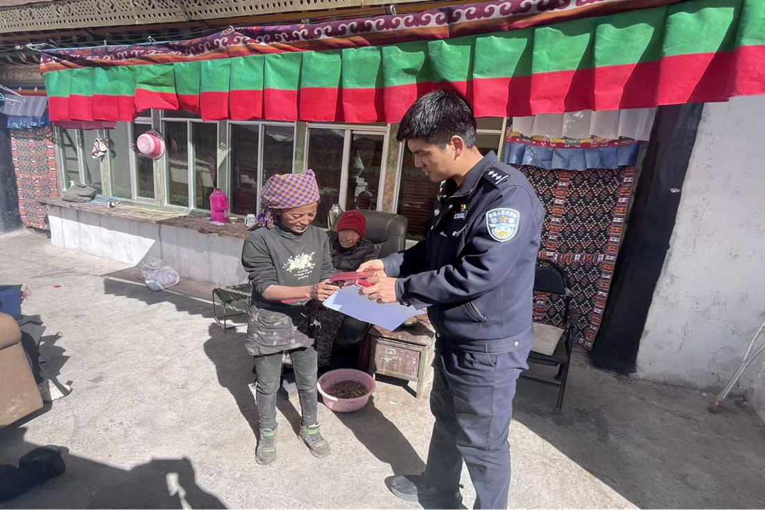 为持续夯实基层基础工作,增强人民群众对公安工作的认同感,强化对辖区人口管理服务工作力度。林周县公安局卡孜乡派出所包村民警前往田嘎村开展“送证上门”服务工作。
