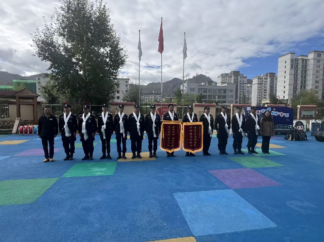 仪式上,江苏实验幼儿园向我支队赠送“警民同心 其利断金、忠于职守 服务人民”锦旗,向教官们敬献哈达,感谢我支队进园开展的为期20天的警训项目,生动的“安全课”、警营开放日等活动让全体教师获益良多。
