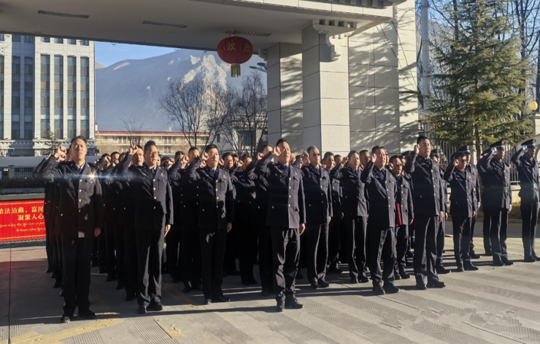 随后,加永斯郎同志领誓《公安机关人民警察誓词》,全体民辅警慷慨激昂地进行庄严宣誓,表达对党、对人民、对公安事业的无限忠诚和牢记宗旨使命、忠诚履职尽责的坚定信念,展示了堆龙公安队伍在新时代新征程上砥砺奋进、勇毅前行的坚定决心和精神风貌。